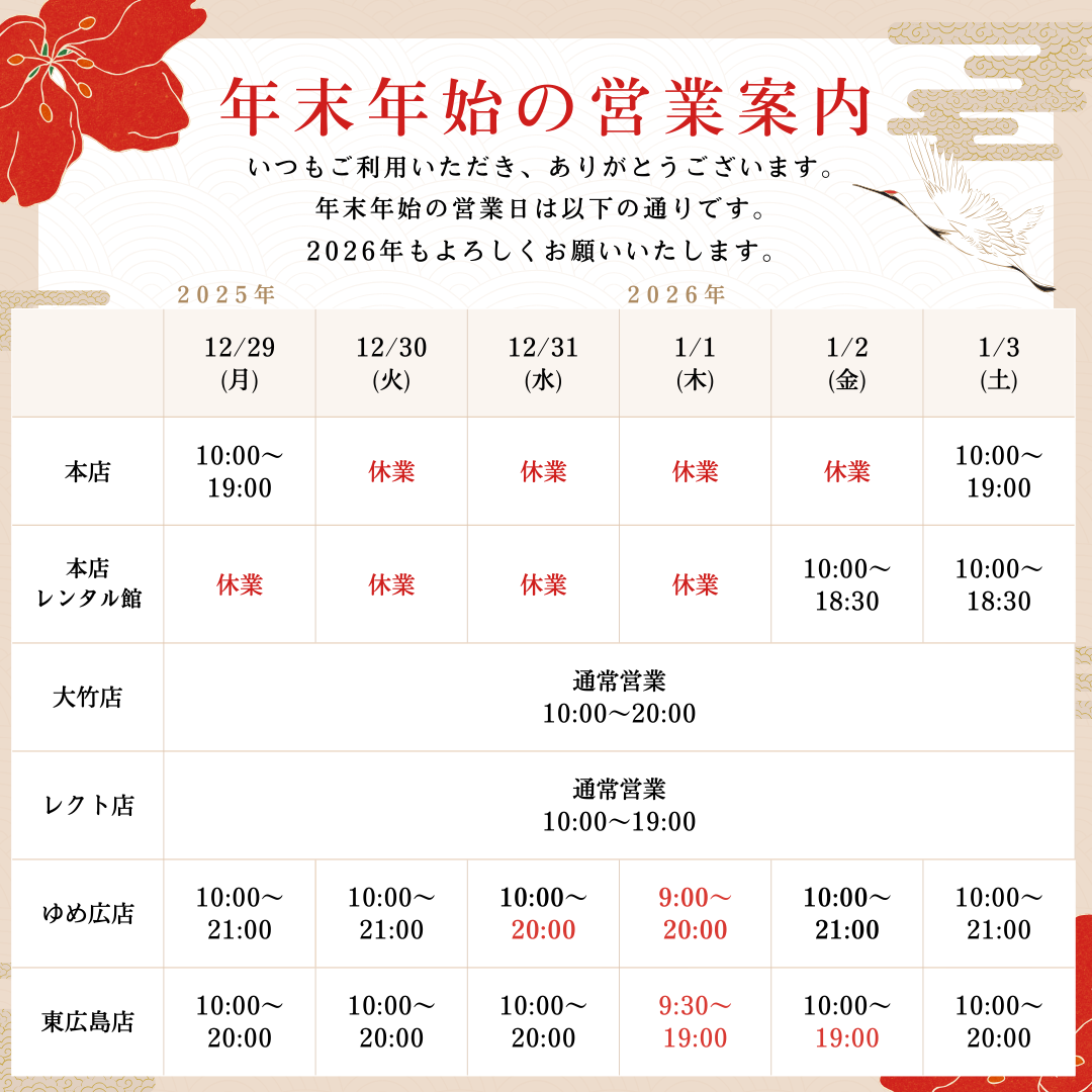 ベージュ 赤 和風 年末年始の営業 お知らせ Instagramの投稿